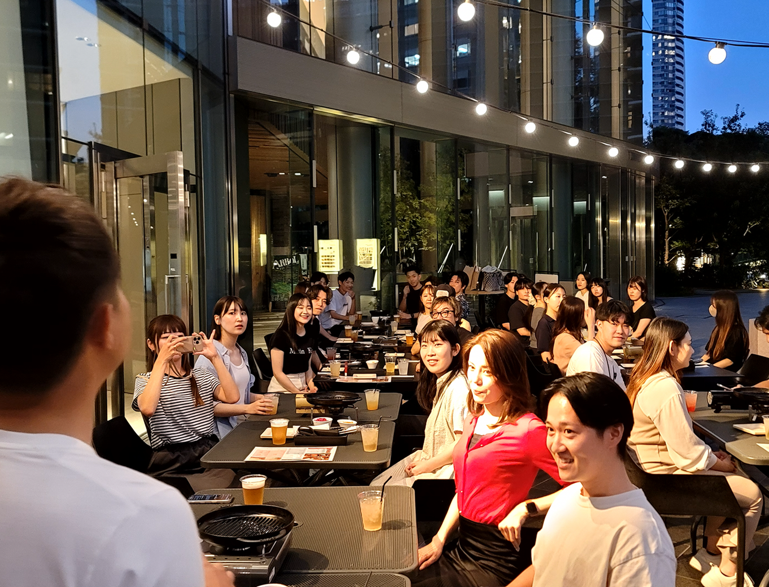 ちょうど良い気温で会話も弾み、お肉が到着してからは皆で一生懸命に焼き始め、取り分け、チームワークの良さも垣間見えました。笑